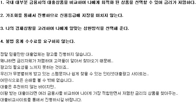 위에서도 언급했듯이 대출을 할 때에는 여러 대출사의 상품을 비교하여..